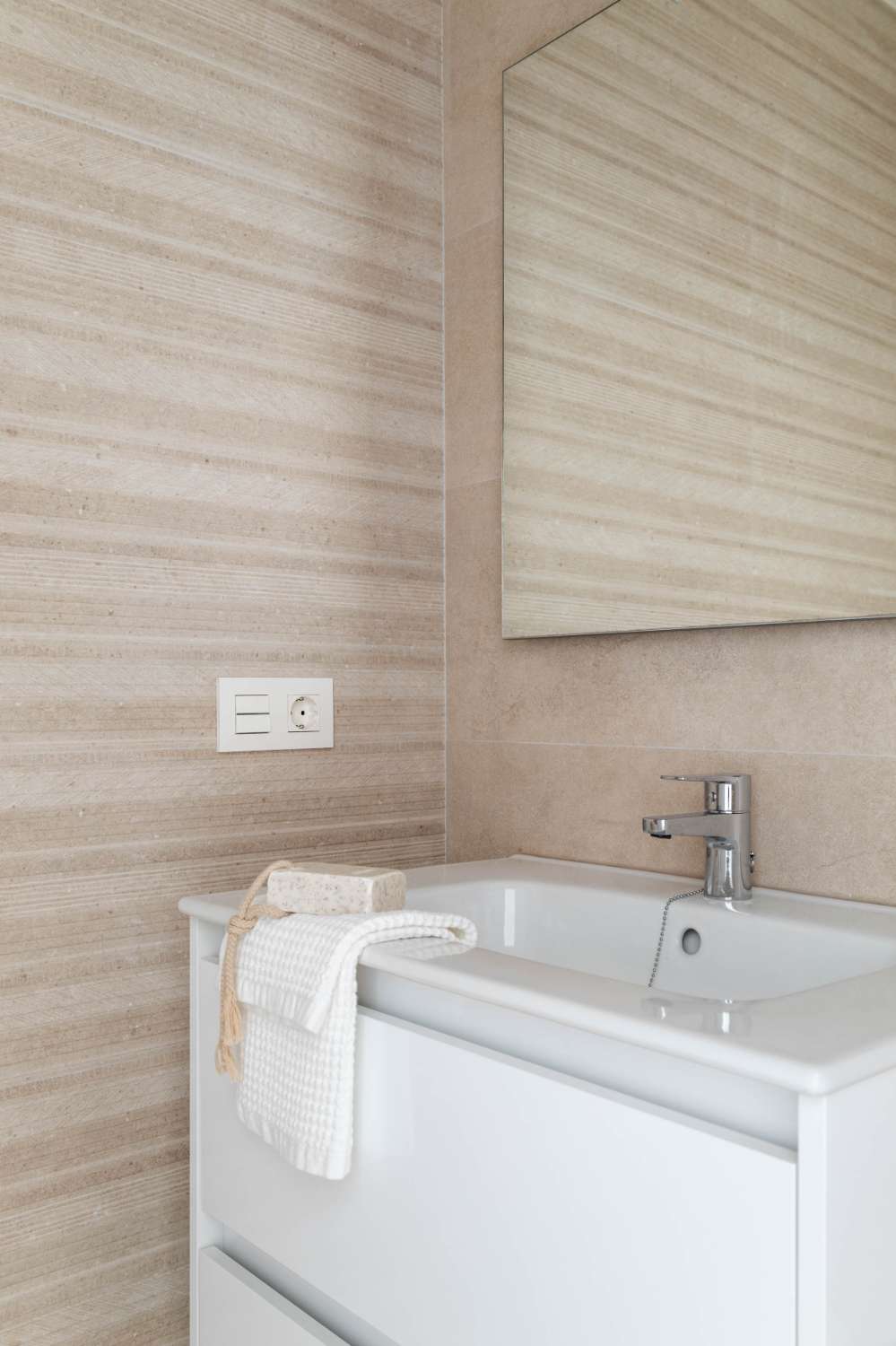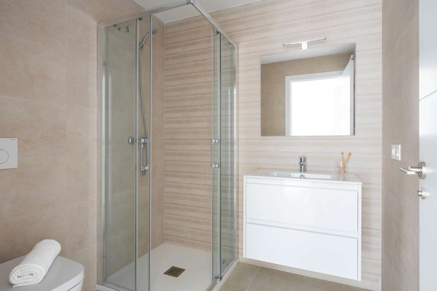 Ejendommen, med 67 m² boligareal og fordelt udelukkende på én etage, er komfortabel for enhver type køber. Den tilbyder to soveværelser, et komplet badeværelse og et gæstetoilet, sammen med en lys stue med direkte adgang til en rummelig terrasse på 39 m², der deles med soveværelset, perfekt til solbadning eller udendørs spisning.