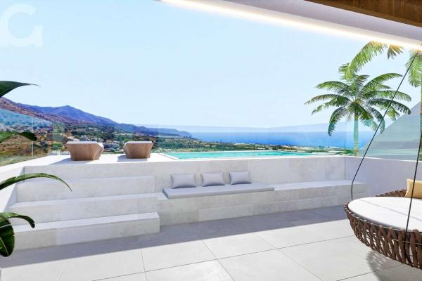 HÄUSER MIT VORDERBLICK AUF DAS BLAUE MITTELMEER. Villen mit privatem Pool in einer...
